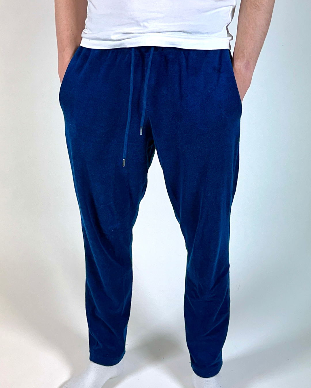 Terry buksene er designet for maksimal komfort med et raffinert uttrykk. Den myke bomull–modal-blandingen gir en luksuriøs følelse mot huden, samtidig som buksen beholder fasong og struktur gjennom dagen.
